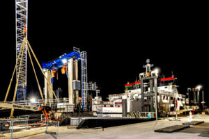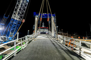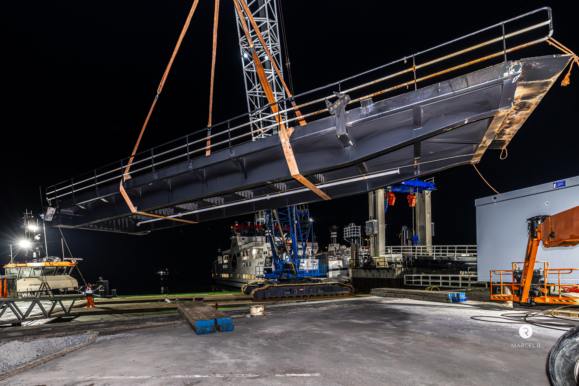 AMELAND – Op de veerdam van Ameland is de afgelopen nacht een tijdelijke autobrug geplaatst. De originele autobrug is verwijderd voor groot onderhoud.