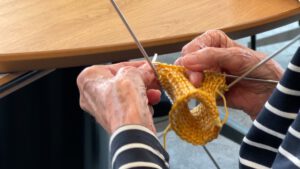 Hoewel de vrouwen graag samenkomen om te breien onder het genot van een lekkere kop thee, stopt de club over twee weken, “en dan beginnen we in september weer”, vertelt Visser. “Dan is het zomer, dan willen we niet meer. Dan moeten we weer wat anders doen.”