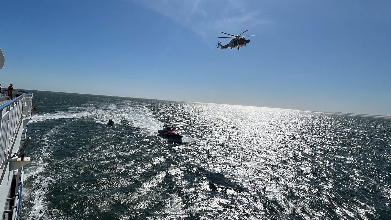 De KNRM en Kustwacht hebben vanmiddag een medische evacuatie gedaan op de Waddenzee. Ze schoten een persoon op de veerboot van Harlingen naar Terschelling te hulp.
